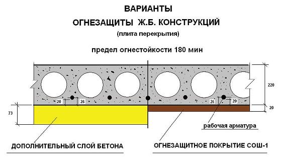 Обеспечивает огнестойкость железобетонных конструкций от 45 до 240 минут(в зависимости от вида бетона конструкции, класса рабочей арматуры и ее положения в сечении конструкции)